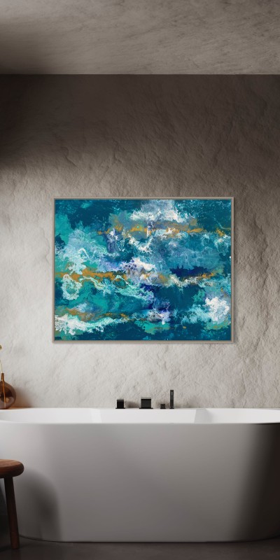 Este cuadro es obra de Beatriz Jortega,lo tengo colgado en una pared del comedor y cuando lo miro el azul del mar me transmite calma y paz.
